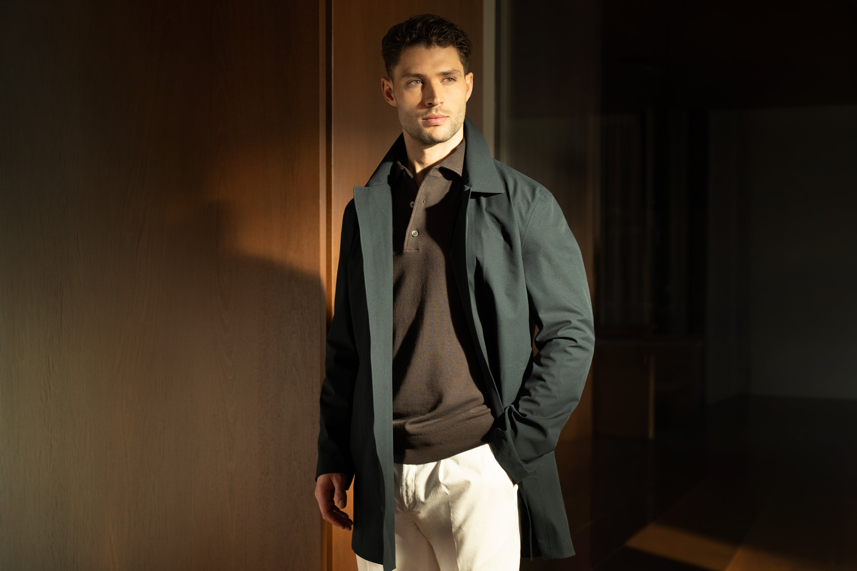 De Japanese Tech Coat van SOCI3TY Limited Fashion combineert minimalistische Japanse tech-esthetiek met moderne functionaliteit. Het strakke silhouet en de verborgen ritssluiting zorgen voor een rustige, cleane look. De soepele technische stof en meerlaagse constructie beschermen tegen wind en lichte regen, terwijl ritszakken je essentials veilig opbergen. Subtiele details zoals de reflecterende strip op de rug en het SOCI3TY-logo op de mouw geven de jas een moderne, sportieve signatuur.